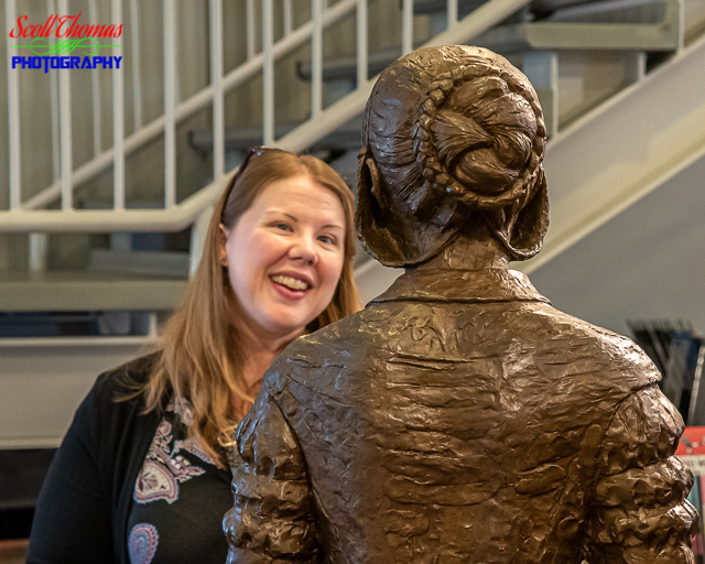 Young woman enjoying her visit to the Women’s Rights National Historical Park in Seneca Falls, New York. Nikon D750/24-120VR, 1/40s, f/8, ISO 6400, EV 0, 98mm Focal Length, Cropped.