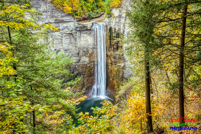 What a difference a year makes. About a year ago I visited Taughannock Falls State Park near Ithaca, New York. It was a warm Autumn day a few days after some rain. The Great Fall in the Woods had a good water flow surrounded by Fall colors.
