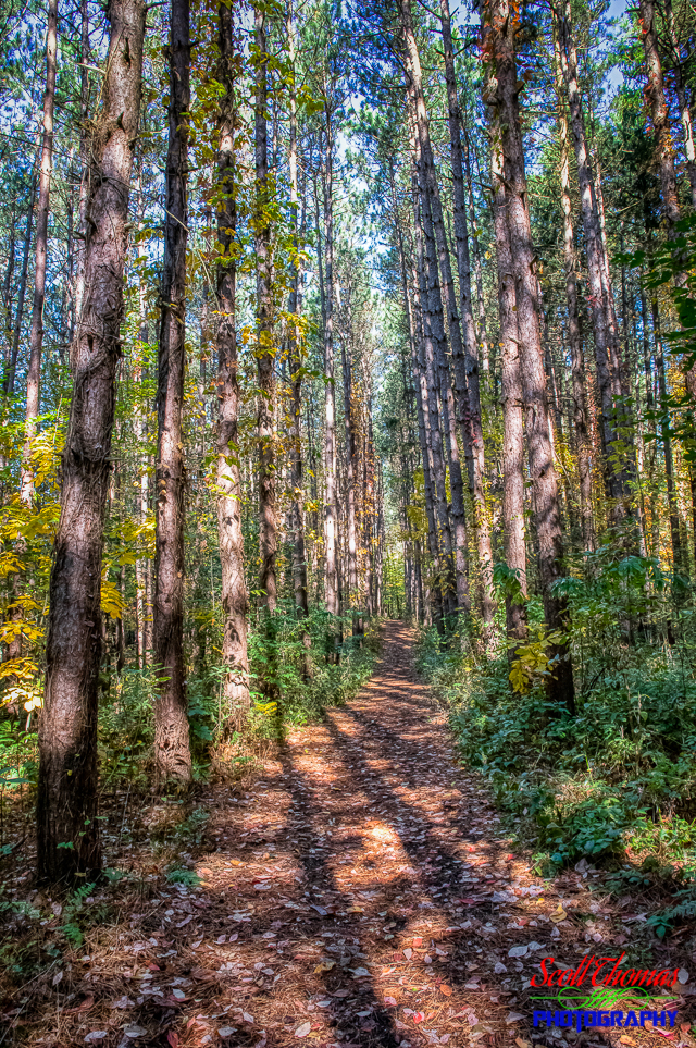 The last trail I walked was a short 1/2 mile loop called the Pine Meadow Trail. It skirts a meadow surrounded by an old Red Pine plantation. I choose this High Dynamic Range image to show you the trail going between the rows of the pine trees. This trail filled the air with the smells of pine.