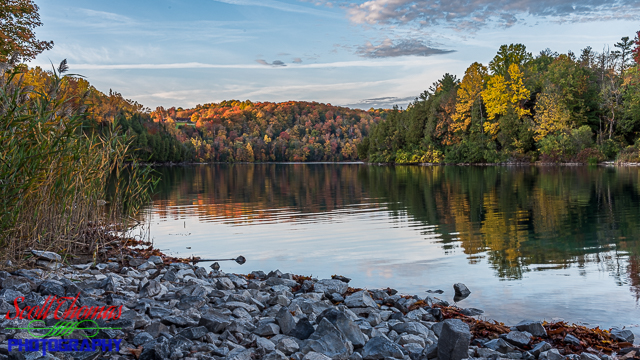 Green Lakes State Park near Syracuse, New York has perhaps the most studied meromictic lake (one in which layers of water do not mix) in the world in Green Lake creating unusual blue-green color to the water. This time of year, the surrounding old growth forests add other colors to the lake.