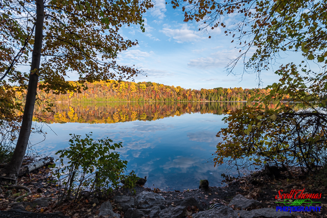 Like Beaver Lake Nature Center I visited the day before, the trees around Green Lake were at peak color last weekend. I circumnavigated around Green Lake on a popular trail I shared with joggers, runners, walkers and a few fellow photographers on a cool morning. The trail had many locations to view the beauty of the Autumn season.