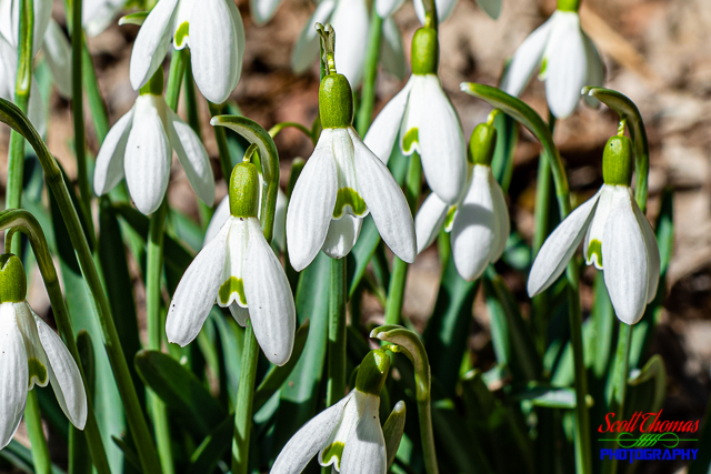 For these two flowers, I opened up the aperture to f/4 which put the background out of focus and popping the Snow Drops right at you. It was a little breezy so the resulting fast shutter speed helped to keep the flowers in focus.