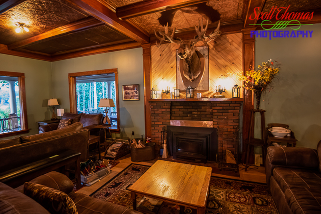 After checking in and getting settled in our room on the second floor, we checked out the rest of the lodge. Somehow, even before we saw it, we knew there would be a moose head trophy over a fireplace. Long View Lodge’s den did not disappoint.